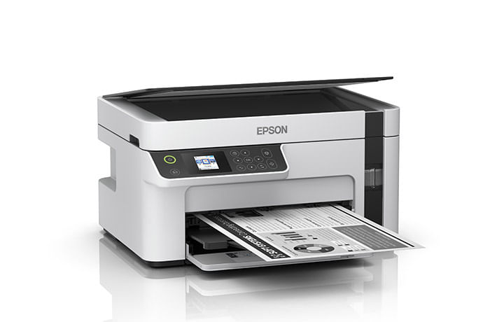 La multifuncional inalámbrica monocromática EcoTank M2120 es la elección ideal para emprendedores que necesitan alto rendimiento y eficiencia en la impresión en blanco y negro sin sacrificar calidad. Con los tanques de tinta rellenables de superalta capacidad, podrá imprimir hasta 11.0005 páginas en negro con dos botellas incluidas y hasta 6.0005 páginas en negro con botellas de reemplazo.
