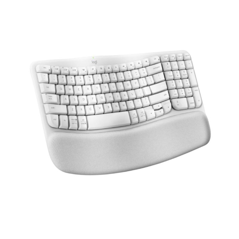 Un teclado ergonómico inalámbrico con un reposa manos acolchado, para una escritura natural y agradable durante todo el día.